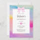 Elegant Rainbow Watercolor Pink Bow Girl Birthday Photo Invitation