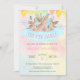 Rainbow Watercolor Rabbits Girl Baby Shower Invitation
