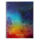 Stylish, trendy notebook featuring a rainbow watercolor space galaxy background. Personalize the space-themed notebook by adding your name or other custom text.