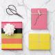 Wrapping paper sheets inspired by artwork painted by Granddaughter Gigi. She loves the blue sky, the two suns and her pink version of a rainbow waterfall with black spots. Grandma Celeste created the mix and match stripes pattern.
