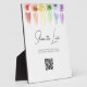 Wedding sign with QR code with rainbow roses. You need to generate and upload your own QR code. Gay lesbian wedding pedestal sign with rainbow roses. Photo sharing sign, honeymoon fund sign, in lieu of gifts charity fund sign with QR code. For smaller sizes, you need to adjust the flowers image size.
