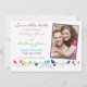 The text and wedding photo on this fun, whimsical, and unique rainbow colour theme birds (songbirds, lovebirds), flower, and leaves (vines) floral wedding photo save the date invitation is fully customisable. A great choice for those having a rainbow theme wedding. To change the text and photo, use the personalise it option. For more extensive text or photo changes, including changes to the font, font colour, font size, photo size, photo placement or text placement, use the customise it option. You can also try it out on different paper types. You could use this rainbow colour wedding save the date card for any other special occasion as well with changes to the text. It would make a nice photo invitation for a variety of special occasions.