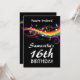 Invite family and friends to a party celebrating your sweet 16th with these musical birthday party invitations with white musical notes floating on a rainbow of swirling colours on a black background. The text on the front and the back of the invitations is fully customisable for your own special occasion.