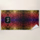 Rainbow yellow red purple sparkles Monogram Beach Towel