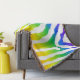 A quality printed throw has its advantages. This is a much finer weave throw than its loopier cousins, and though lighter, it is worth the investment for custom room accessorizing. The back is much prettier than the typical brown, and the fringe on the long sides very vivid, the selvage nicely done. Before photographing, I washed the throw in cold water, delicate, with a thicker woven throw the same size. On tumble dry low, this throw was dry in half the time as the other. This is a very practical quality if you use throws for furniture covers or to wrap up in frequently. The sleekness of the fabric makes it a great layer for accenting or protecting without the feeling of sitting on too much stuff. Perfect for napping or when you feel a light chill coming on. The color printing is beautiful and on this fabric, matched the design and color of my Photoshop image. This is an advantage for blending room fabrics and colors. The fringe on the short sides prints the colors from the design image and therefore varies from the side fringe. I streaked a white fractal line through the plaid pattern to give the illusion of weaving. This printed as crisp as an illusory thread, and put some white in the short side fringe, showing another advantage of print vs loomed- for artistic purposes, line lines, detail, and color integrity can be planned and preserved. My loomed throws have color limitations and more of a needlepoint texture. Print throws reproduce an exact image. The throw felt a little stiff straight out of the package, but this went away in the first delicate wash. Of course I searched the wash water for ink or bleeding and there was none.