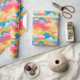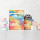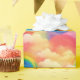 Bright and colourful patterns feature rainbows arching over fluffy clouds against a vibrant sky. The repeated motif creates a whimsical and cheerful backdrop.