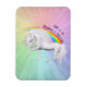 A cute mystical white unicorn and a rainbow with the words "life is all rainbows and unicorns"