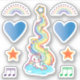 Rainbows, Hearts, Musical Notes, Stars and a Unicorn. This sticker sheet is filled with fun!