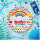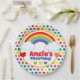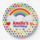 We're over the rainbow with joy! Chase rainbows and celebrate in colour with this happy rainbow paper plate. Great for any colourful or rainbow birthday celebrations. Features a rainbow in the middle and accented with rainbow coloured polka dots on the top and bottom. Colourful hearts adorn the wording. Check out all the other items available in my rainbow hearts and dots collection.
