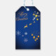 Blue Christmas gift tag, merry Christmas note, gold, reindeer, stars, and garlands make this design unique and look elegant. enjoy this design for your gifts to friends and family.