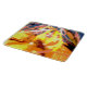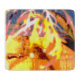 The abstract artwork on this 6”x7” Cutting Board was created from an original closeup photograph by HomeWare of raindrops on a coral palm plant. The photo design is in sunny tropical colours, bright yellow, pink, orange, terracotta, blue and white.