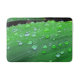 The image on this Bath Mat is an original closeup photograph by ZoeSPEAK of raindrops on a Manilla palm frond. The spring green frond is curved, giving us views of the water droplets from different angles. At the top of the curve we see a horizon of raindrops against the dark background. As the frond curves around, the droplets have bright highlights, and become smaller towards the underside in shadow.