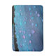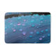 The artwork on this Bath Mat is an original closeup photograph by ZoeSPEAK of raindrops on a Manilla palm frond. The blue frond is curved, giving us views of the spacey blue water droplets from different angles. At the top of the curve we see a horizon of raindrops against the dark background. As the frond curves around, the droplets have bright highlights, and become smaller towards the underside in shadow.