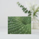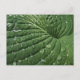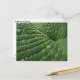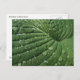 A closeup of a green hosta leaf is featured on this fine art photography botanical postcard. The veins create a circular spiral abstract pattern. The recent rain has deposited water droplets and the raindrops reflect the light. This plant is also known as funkia, plantain lily or giboshi (in Japan). What a great idea for a gardener or nature lover!
