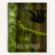 Sporty and fun take on the classic "Hang in there" kitten poster. A sloth with a tennis racket reaches out from a mossy rainforest tree branch on this sporty spiral notebook, text can be personalised to create a custom gift that's great for coaches and students!