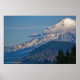 A landscape photograph of the cloud covered Mount Rainier in Washington.