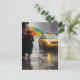 Rainy Day Abstract Woman A Rainbow Umbrella Taxi Postcard