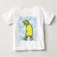 This little boy in his bright yellow slicker and wellies seems to have made a friend in the form of a cheerful frog somewhere along the way. The blue background behind the little fellow is full of clouds and numbers. This design can be used on any of a number of different tops for kids, babies and adults.