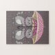 Piece together this adorable puzzle featuring two cute grey cats sharing a pink polka-dot umbrella on a rainy day. Their sweet smiles and matching bow ties make this a heartwarming scene perfect for cat lovers and puzzle fans alike!