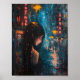 This piece is a perfect conversation starter for any space, ideal for collectors who appreciate art that evokes mood and story. It is suited for display in both private and public collections, offering a window into a moment of urban solitude that resonates with the soulful side of city life. "Rainy Rhapsody" is not just a painting; it's a poignant experience that speaks to the heart of anyone who has found beauty in the quiet moments of a rainy cityscape.