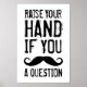Funny design reminding students to raise their hand if they have a question. Raise your hand if you mustache - must ask a question.