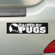 This popular funny bumper sticker lets em know where your bug eyed, hanging tongue, wagging tail, snorting, and spiinning while being all cute and cuddly, came from! You can't help it - you were RAISED BY PUGS! (Also available in purple, red, blue, green, or pink!)