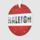 Display your love for the city of Raleigh, North Carolina this holiday season with this festive Christmas ornament! The colour collage features photos of the Capitol, the NC State Bell Tower, Lonnie Poole golf course, and other views of the downtown.