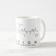Raleigh spelled out in amino acids as R A L E I G H (Arginine Alanine Leucine Glutamic acid Isoleucine Glycine Histidine) on a mug for the scientist in you.