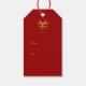 Golden Ram Symbol with an embossed digital effect on red gift tag. You can easily change background colour and add text by clicking the customise button. Matching wrapping paper, tissue paper, greeting card, postage and more... Perfect for Chinese New Year of The Ram or Goat 2027 or Birthday (people born in Ram or Goat year).-------- The Goat (Chinese: 羊; pinyin: yáng) is the eighth sign of the 12-year cycle of animals that appear in the Chinese zodiac related to the Chinese calendar. The sign is also referred to as the Ram or Sheep sign, since the Chinese word yáng is more accurately translated as Caprinae, a taxonomic subfamily which includes both sheep and goats. (...) People born within these date ranges can be said to have been born in the "Year of the Goat", while also bearing the following elemental sign: