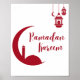 Celebrate Ramadan with this stylish red crescent moon and lantern wall print featuring “Ramadan Kareem” in elegant script. Perfect Zazzle artwork for Muslim home décor, gifts, or festive inspiration.