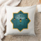 Celebrate the holy month with this elegant pillow design featuring “رمضان كريم” in golden Arabic calligraphy, glowing lanterns, and mosque silhouettes framed in a traditional eight-pointed star. The deep teal background and warm accents evoke spiritual reflection, festive joy, and cozy Ramadan nights.