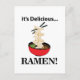 Ramen It's Delicious Ramen Postcard original design by Nisha Prabhu. Spread the love for noodles with our "It's Delicious Ramen" postcard! Perfect for foodies and ramen enthusiasts alike, this eye-catching design features vibrant graphics and mouth-watering imagery that will make anyone crave a steaming bowl of ramen. Whether you’re sending a quick note to a friend, sharing your love for Japanese cuisine, or simply decorating your wall, this postcard captures the essence of comfort food in a fun and stylish way. Ideal for collectors or as a unique gift for someone special, this postcard is sure to make every ramen lover smile.