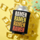Simple colourful text design with "Ramen, Ramen, Ramen, Ramen" text in beige, yellow, orange and red colours