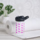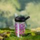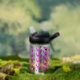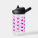 A thundering herd of rampaging pink dinosaurs race across this water bottle.