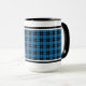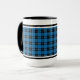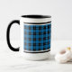 Coffee mug with the hunting tartan for Clan Ramsay and its septs. Bright blue, black and white Scottish plaid pattern dated to 1940.