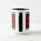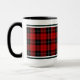 Coffee mug in the tartan for Clan Ramsay, Ramsey, and its septs including  Dalhousie. Black and red Scottish plaid pattern from 1842, with white accents.