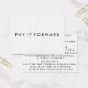 Double sided black and white Pay It Forward card in celebration of Random Acts of Kindness day and the 365 day a year movement. Back side of card lists simple ideas of ways we can all share kindness throughout our day. Each line of text is customisable, if you have your own ideas you can change every line of the list.