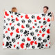 Random Cartoon Dog Paw Prints And Red Hearts Fleece Blanket