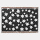 Throw blanket with a striking design of white stars scattered on black.