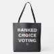 Ranked Choice Voting with checkmark on black Tote Bag