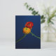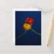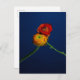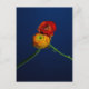 Photographic postcard of 2 ranunculus flowers entwined against a deep blue background