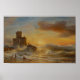 Waves slam against the old Castello sul Mare, where a shipwreck’s broken hull lies shattered on the rocks. Dark clouds roll overhead, and the sea crashes with fury, flooding the harbour with sound and motion. The painting captures a dramatic moment of destruction and survival.