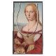 This portait is a beautiful renaissance painting, called Portrait of Young Woman with Unicorn, was painted by Raphael in 1506. Look closely - the lady is holding a little baby unicorn in her arms.