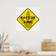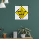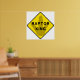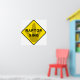 Raptor Xing - yellow diamond warning sign style design with dinosaur footprint.
