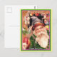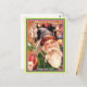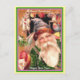 Rare Santa Purple Hat Green Coat Brown Fur & Stars Postcard