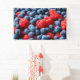 This design features a close-up image of raspberries and blueberries, which are healthy fruits. Raspberries are red and blueberries, as the name suggests, are blue.