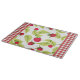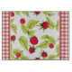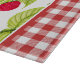 This country / farmhouse themed glass cutting board features a panel of watercolor raspberries on background of red gingham.