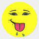 Raspberries or smiling with tongue out, silly emoticon. Hand drawn cartoon graphic. :P