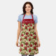 A vibrant kitchen apron featuring a charming pattern of raspberries and cream-coloured flowers intertwined with lush green leaves. This delightful design brings a fresh and lively touch to your kitchen, perfect for cooking or baking in style. The apron combines the natural beauty of floral elements with a bright raspberry tone, creating an elegant yet functional accessory.