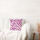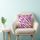 Purple and White Zebra Stripe Pattern Pillow. Perfect for New Baby Girl's Safari Jungle Nursery Decor or Big Girl's Room Decor or Teen Girl Room Decor or even Mum's She Shack Decor. Change the background colour (the pink) to any colour by clicking customise then edit. Scroll down to Use the last tool labelled "background" click on edit to choose from the swatches shown or click the plus (+) sign to enter you RGB Hex Code in the lower right hand field or drag the dot to find you colour. Just search on the Internet for RGB Hex Code to find your colour and make a one of a kind designer pillow with your custom colour. If you prefer to personalise then you can add a text field or nameplate field by clicking edit/customise/personalise further. A single animal print accessory will create an instant focal point. This zebra stripe pillow will draw the focus to the centre of the room and contrast any palette and anchor the room's design.